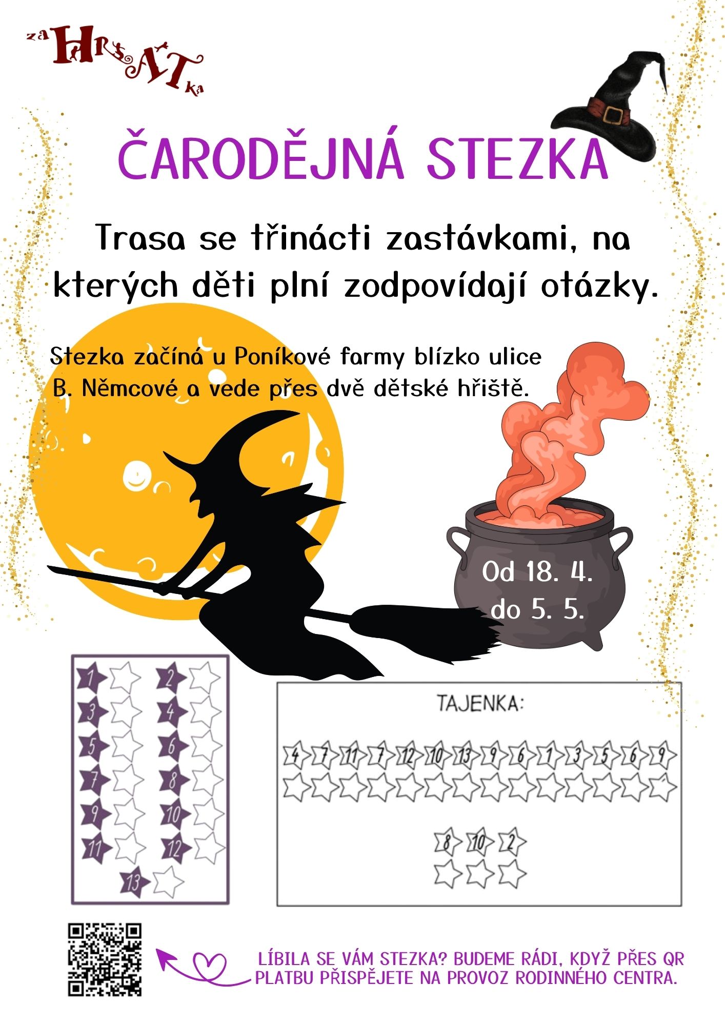 Venkovní stezka pro děti od 3 – 10 let s tématem Pálení čarodějnic.