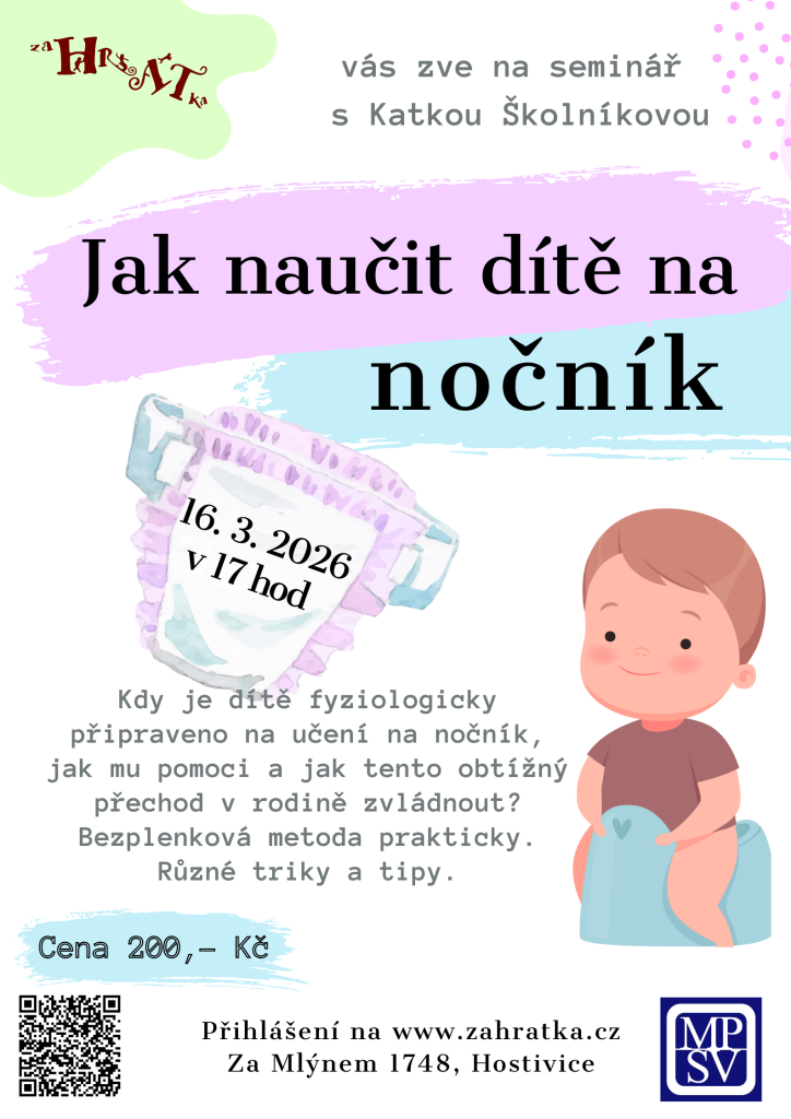 Přijďte v pondělí 16. března od 17 hodin na seminář JAK NAUČIT DÍTĚ NA NOČNÍK.